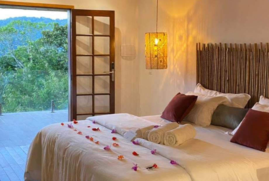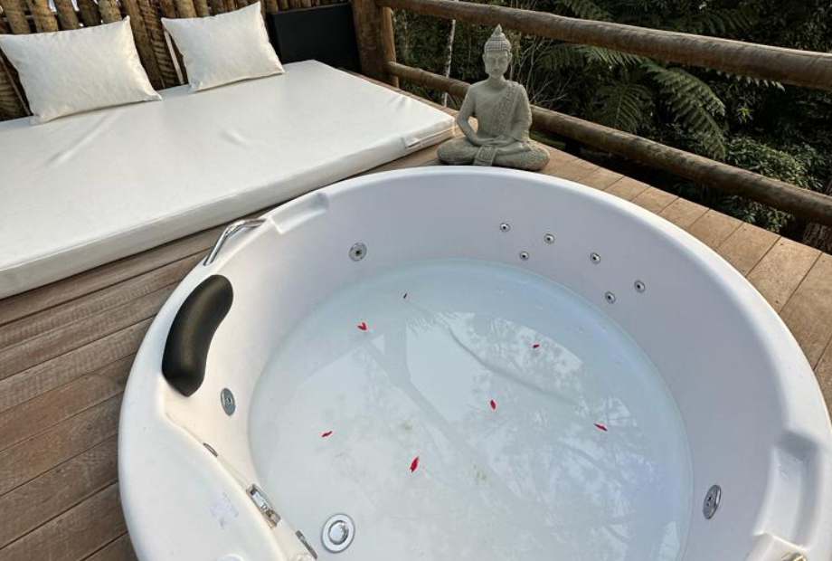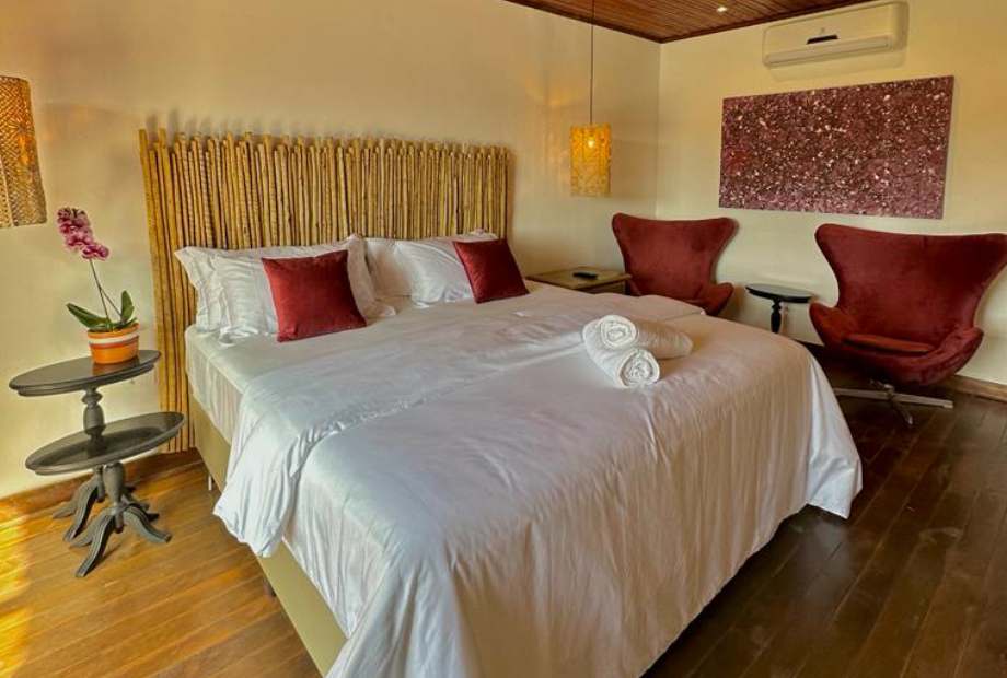 Suíte turmalina são bangalôs que possuem hidromassagem, cama casal king, decoração especial.